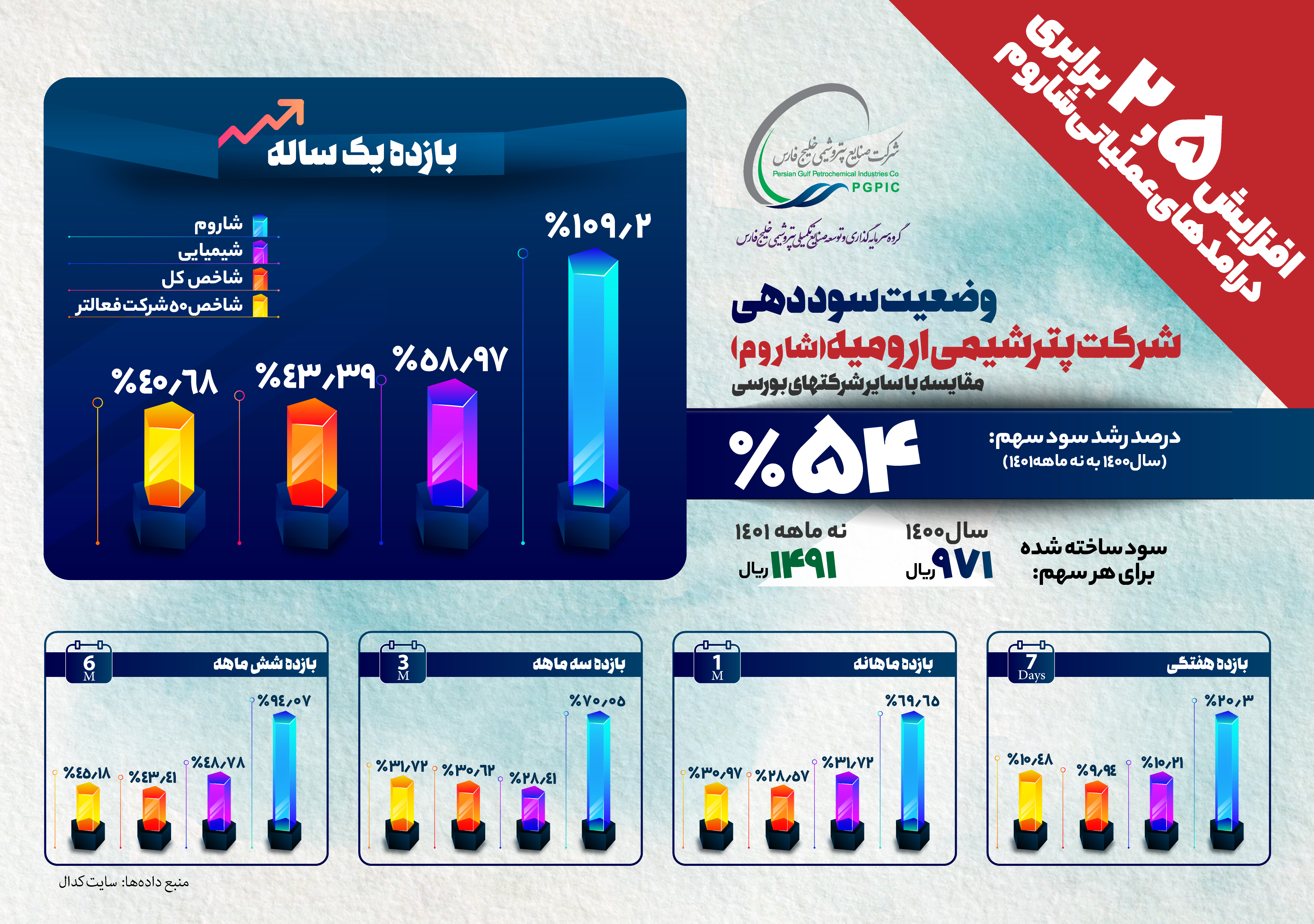 شرکت پتروشیمی ارومیه در سال 1401 موفق به افزایش 2.5 برابری درآمدهای عملیاتی خود و سودسازی شد.
