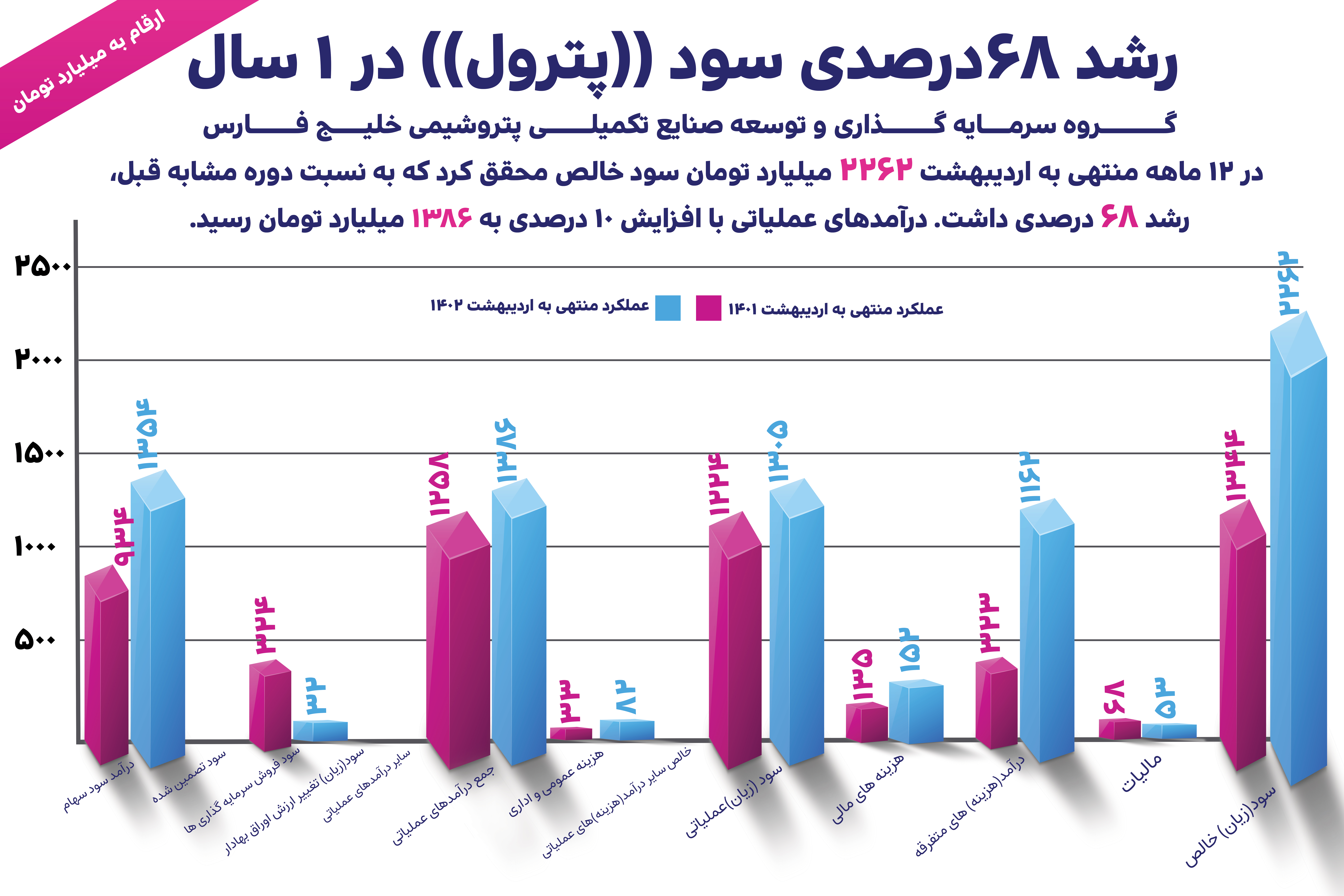 به گزارش روابط عمومی پترول، گروه سرمایه گذاری و توسعه صنایع تکمیلی پتروشیمی خلیج فارس در 12 ماهه منتهی به اردیبهشت 2262 میلیارد تومان سود خالص محقق کرد که به نسبت دوره مشابه قبل، رشد 68 درصدی داشت. درآمدهای عملیاتی با افزایش 10 درصدی به 1386 میلیارد تومان رسید.